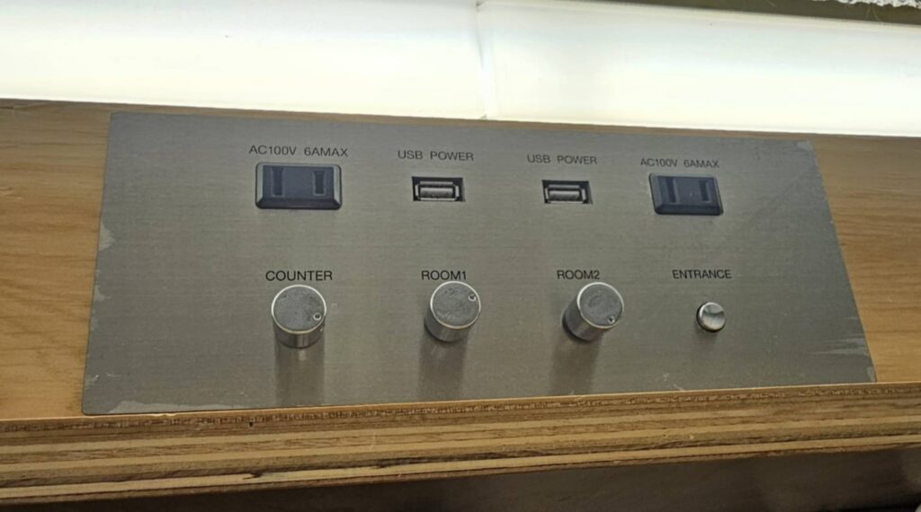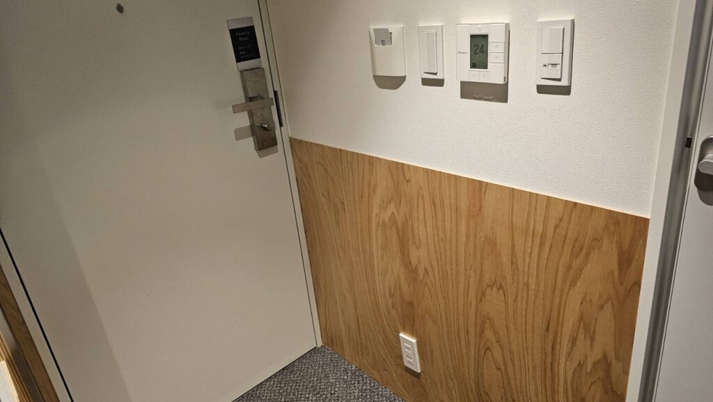 部屋入り口にもコンセント挿し口があり、コンセントの数は必要十分👏
