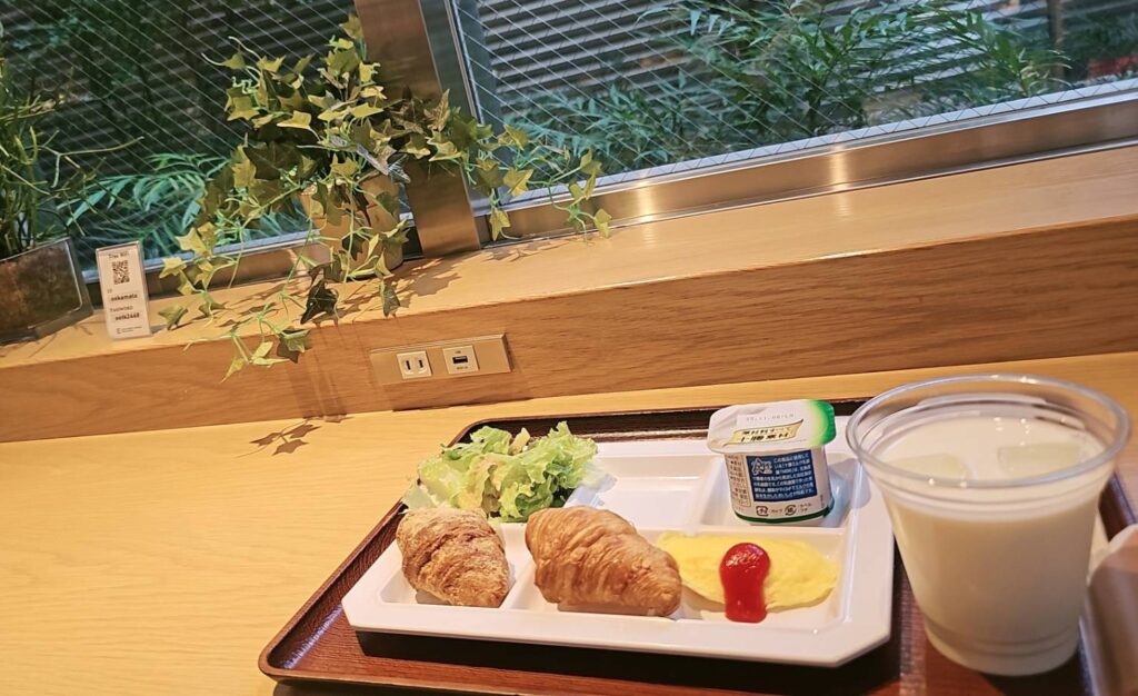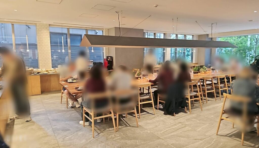 ここは6:30~10:00が朝食会場ですが、10:00以降はフリーカフェとして宿泊者は無料で使えるとのこと。